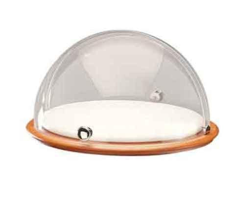 Cheese Top, 20-7/8" dia. (530mm) x 11-13/16"H (300mm), half roll top plexi-glass lid, 17-11/16" (450mm) plastic revolving cutting board, for 30.7924.0000, wood base, Elegance by Hepp