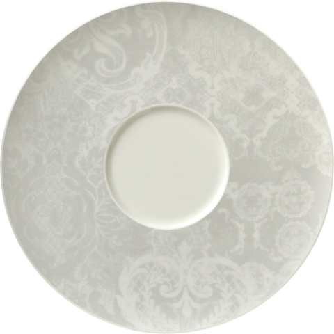 Saucer, 4-7/10" dia., round, coupe, dishwasher, microwave & oven safe, lead free, porcelain Noble china, Create! Decorations Jaquard By Bauscher