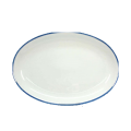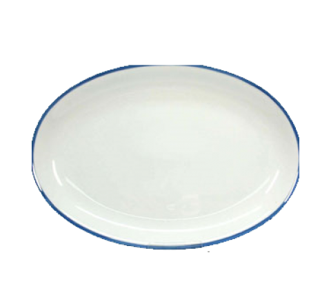 Platter, 12-3/4" x 9", oval, coupe, 5/32" (4mm) blue band, porcelain, Del Mare Decoration, Bonn by Bauscher
