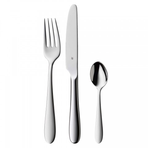 Flatware Place Set Kit, 3-piece, includes: (1) table fork (54.8102.6040), (1) table knife (54.8103.6049), (1) coffee spoon (54.8110.6040), 18/10 stainless steel, Sara by WMF (no charge)