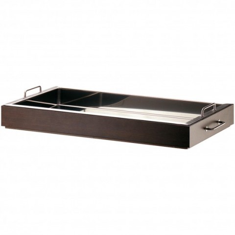 Top, 32-1/4"L x 18"W x 4-1/2"H, square, wood & stainless steel, wooden top with container for ice, by WMF