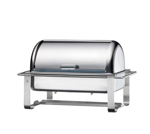 Chafing Dish, GN 1/1, 25-3/16" (640mm) x 14-3/16"W (360mm) x 16-15/16"H (430mm), rectangular, with half roll top lid, includes burner holder, 18/10 stainless steel, by Hepp (inserts & electrical heating unit not included)