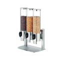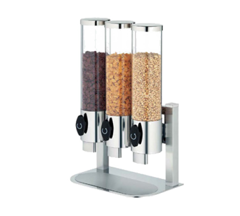 Cereal Dispenser, triple dispensers, 369-3/5 oz. (123.2 oz. each dispenser), 15-1/2"L x 9-1/4"W x 23-1/2"H, in-line, dishwasher safe, 18/10 stainless steel top & base, PMMA dispenser, clear, Arte by Hepp