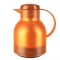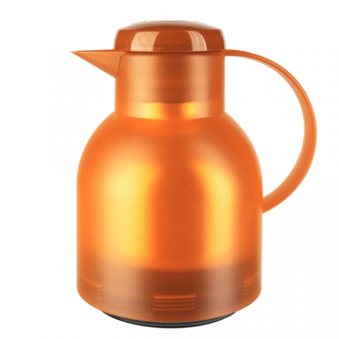 Beverage Server, 1 liter (33.8 oz.), 7" x 5-11/16" x 8-1/2"H, heat/cold retention: 12/24 hours, quick press closure, glass liner, vacuum insulated, dent/scratch resistant, leak-proof, polypropylene, translucent orange, Samba, Emsa, Made in Germany