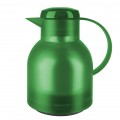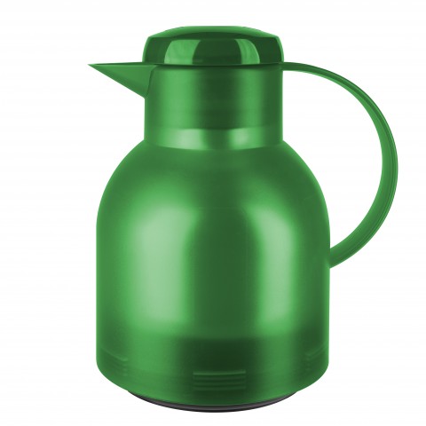 Beverage Server, 1 liter (33.8 oz.), 7" x 5-11/16" x 8-1/2"H, heat/cold retention: 12/24 hours, quick press closure, glass liner, vacuum insulated, dent/scratch resistant, leak-proof, polypropylene, translucent grass green, Samba, Emsa, Made in Germany