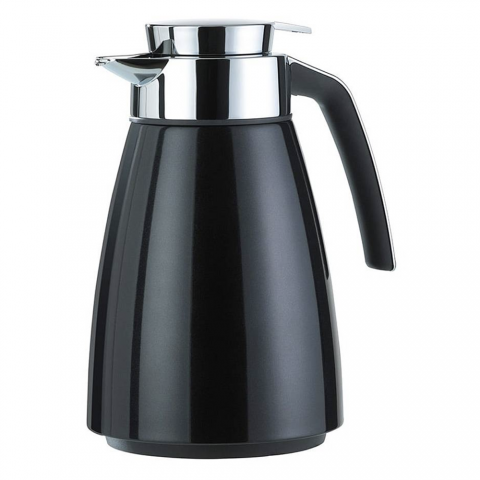 Beverage Server, 1 liter (33.8 oz.), 7-9/16" x 6-1/8" x 9-7/8"H, heat/cold retention: 12/24 hours, quick tip closure, glass liner, soft touch handle, vacuum insulated, dent/scratch resistant, leak-proof, ABS plastic, black, Bell, Emsa