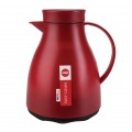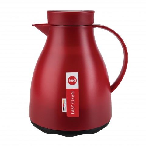Beverage Server, 1 liter (33.8 oz.), 7-1/4" x 6-7/16" x 8-2/3"H, heat/cold retention: 12/24 hours, quick tip closure, glass liner, vacuum insulated, leak-proof, separates into (2) parts for cleaning, dishwasher safe, polypropylene, burgundy, Easy Clean, Emsa, Made in Germany