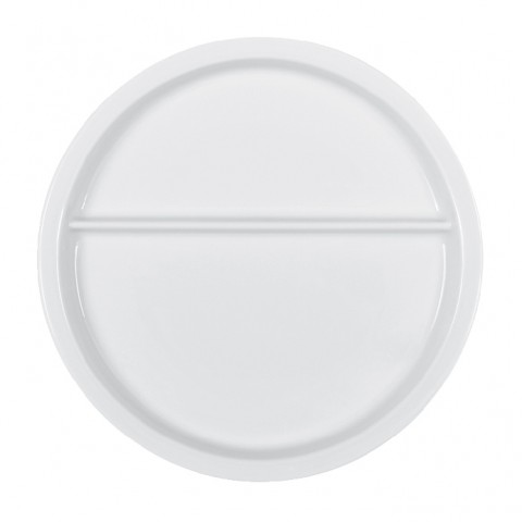 Compartment Plate, 9-1/8" dia., round, 2-compartment, porcelain, white Bauscher