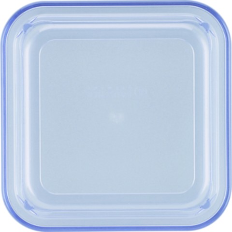 Cover, 4-7/10" x 4-7/10" x 1-1/10"H, square, high, heat safe up to 176°F, microwave and dishwasher safe, plastic, transparent blue, Lids by Bauscher