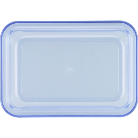 Cover, 6-3/5" x 4-7/10" x 2-1/5"H, rectangular, high, heat safe up to 176°F, microwave and dishwasher safe, plastic, transparent blue, Lids by Bauscher