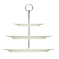 Etagére, 10-5/8" dia. x 12-13/16"H, 3-tier, oval, flat, silver-plated stand, porcelain plates, bone white, Purity by Bauscher