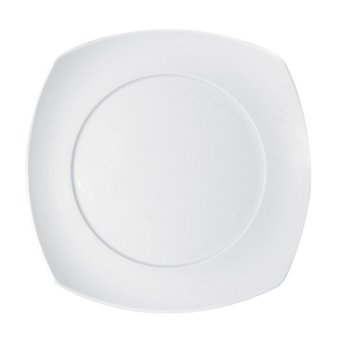 Plate, 9-3/4", square, flat, coupe, with round center well, porcelain, Options by Bauscher
