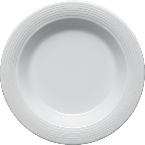 Assist Plate, 13.53 oz., 9-1/16" dia. x 1-1/2"H, round, deep, with rim, porcelain, azure brushed thin inner rim décor, Dialog by Bauscher