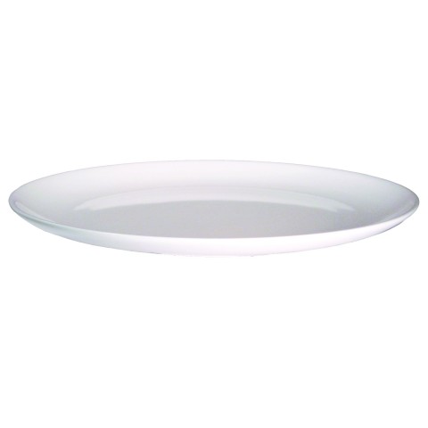 Platter, 14" dia. x 1-1/4"H, round, coupe, chip and stain resistant, dishwasher safe, melamine, white, Dalebrook (400 each minimum order) MOQ 400
