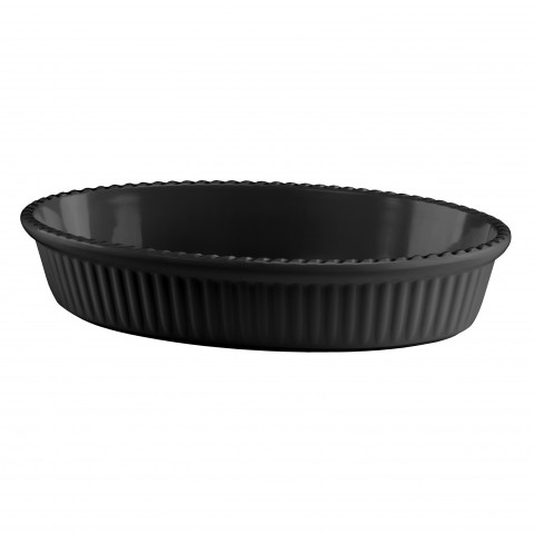Delicase Tray, 3-1/4 qt., 15-1/2"L x 10-1/2"W x 3"H, oval, fluted, chip and stain resistant, dishwasher safe, melamine, black, Dalebrook (400 each minimum order) MOQ 400
