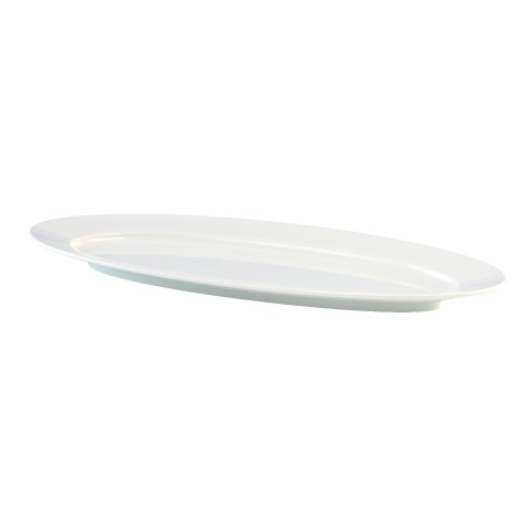 Fish Platter, 28"L x 11-1/4"W x 1-1/2"H, large, oval, chip and stain resistant, dishwasher safe, melamine, white, Dalebrook (400 each minimum order) MOQ 400