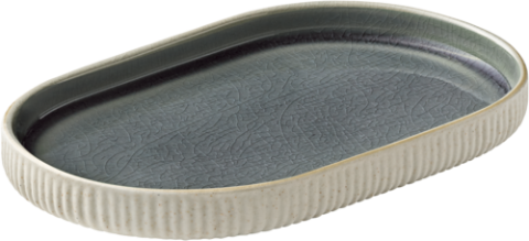 Platter, 7.1" x 4.3", oval, coupe relief, dishwasher, microwave & oven safe, stoneware, grey, Nara, Playground