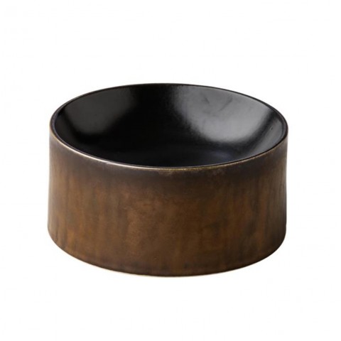 Tower Plate, 6.3" dia. X 3.1"H, round, vitrified china, black satin/gold, Studio Raw