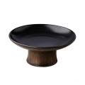 Plate, 8" dia. X 3.4"H, round, footed, vitrified china, black satin/gold, Studio Raw