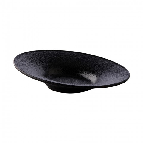 Angled Plate, 10.2" dia., round, vitrified china, black, Studio Raw