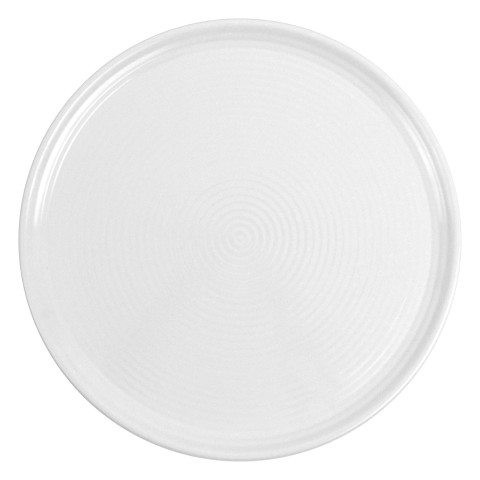 Ripple Pizza Plate, 13-3/4" dia., round with geometric circular ripple pattern, melamine, white, Dalebrook