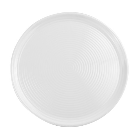 Ripple Pizza Plate, 12-1/4" dia., round with geometric circular ripple pattern, melamine, white, Dalebrook (500 each minimum order) MOQ 500