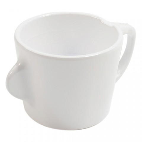 Cup, 6-3/4 oz., 5-1/10"W x 3-1/2"D x 2-4/5"H, with sensory handles, lightweight, dishwasher safe, melamine, white, Omni by Dalebrook (500 each minimum order) MOQ 500