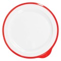 Low Plate, 6-3/4 oz., 9-1/2"W x 9-1/10"D x 4/5"H, round, with rim and sensory handle, lightweight, dishwasher safe, melamine, white with red rim, Omni by Dalebrook
