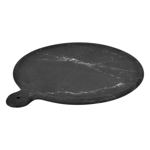 Carrara Collection Marble Platter, 17-3/4" x 15" x 1/2"H, round, with handle, chip and stain resistant, dishwasher safe, melamine, black, Dalebrook (500 each minimum order) MOQ 500