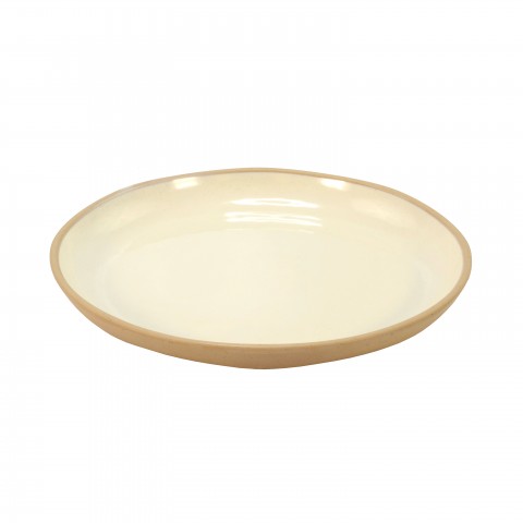Marl Collection Dish, 15-1/4" dia. x 1-3/4"H, round, deep, organic shape rim, chip and stain resistant, dishwasher safe, melamine, two tone: speckled gloss inner/matte outer, cream, Dalebrook (Core collection)