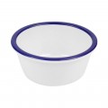 Enamelware Collection Sauce Pot, 4-1/2 oz., 3-1/2" dia. x 1-1/2"H, round, blue rim, anti-slip silicone feet, chip and stain resistant, dishwasher safe, melamine, white, Dalebrook