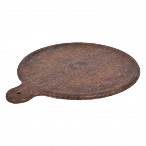 Rustic Wood Collection Platter, 15" x 12-1/2" x 1/2"H, round, with handle, anti-slip silicone feet, chip and stain resistant, dishwasher safe, melamine, wood finish, Dalebrook (500 each minimum order) MOQ 500