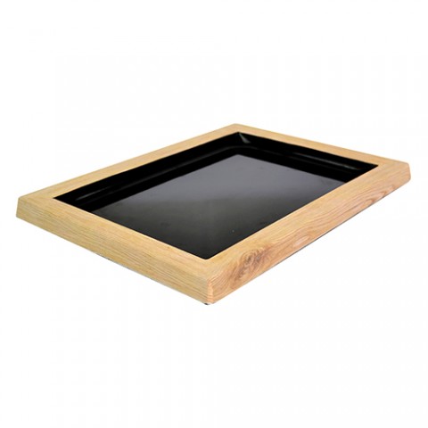 Tray, 11" x 8-1/4", rectangular, dishwasher safe, melamine, wood/black, Dalebrook