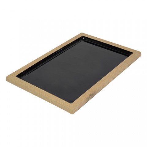 Tray, 16-9/16" x 11", rectangular, dishwasher safe, melamine, wood/black, Dalebrook