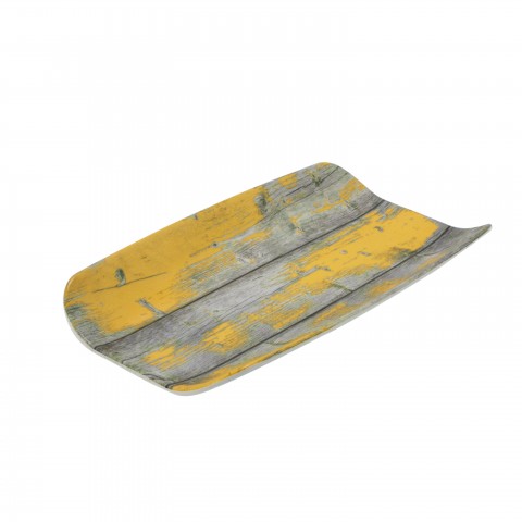 Tura Collection Serving Tray, GN 1/3 size, 12-3/4"L x 7"W x 1-1/2"H, rectangular, curved, anti-slip silicone feet, chip and stain resistant, dishwasher safe, melamine, faux wood rustic yellow, Dalebrook