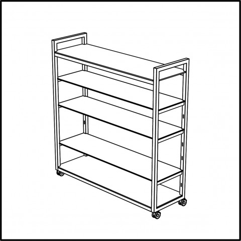 Venta® Backbar, for storage and presentation of glasses, bottles, cups, etc., base made in steel with powder-coating, all shelves in material compact laminate, delivery with a total of 5 shelves, 3 shelves can be placed freely in 3,2" grid, base frame with castors (all with brake), total dimensions 63" x 19,7" x 71,9", castors in diameter = 2,56"