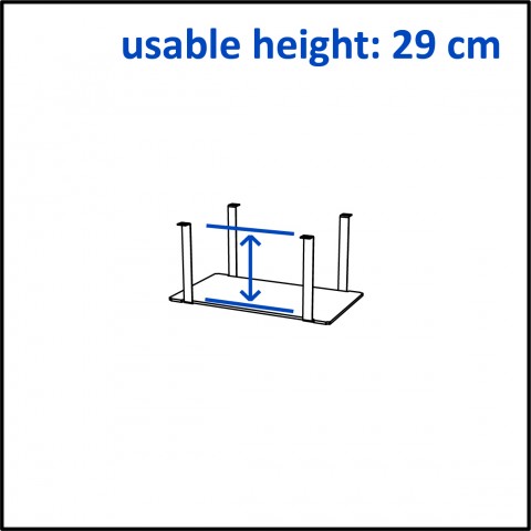 Venta® Shelf, to create storage space under a Buffet Table, STAGE_50_XS, 2 x U-bolt in steel with powder-coating, shelf plate made in material compact laminate, usable height = 11,4", dimensions 29,1" x 16,9"