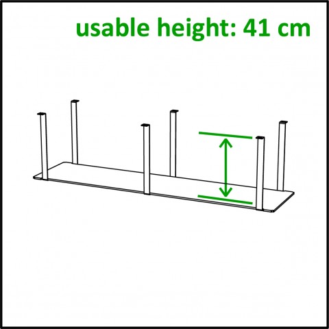 Venta® Shelf, to create storage space under a Buffet Table, STAGE_50_M, 3 x U-bolt in steel with powder-coating, shelf plate made in material compact laminate, usable height = 16,1", can be combined with FRONTBLIND_APERTURE_STAGE_M (VE-38058), dimensions 68,5" x 16,9"