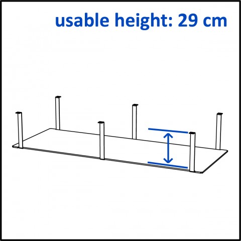 Venta® Shelf, to create storage space under a Buffet Table, STAGE_80_L, 3 x U-bolt in steel with powder-coating, shelf plate made in material compact laminate, usable height = 11,4", dimensions 74,8" x 28,7"