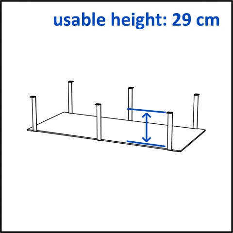 Venta® Shelf, to create storage space under a Buffet Table, STAGE_80_S_164, 3 x U-bolt in steel with powder-coating, shelf plate made in material compact laminate, usable height = 11,4", dimensions 62,2" x 28,7"