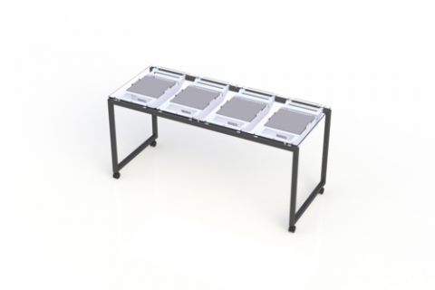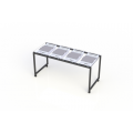 Venta® Large Gastros Induction 4 Units Table by Venta, includes(1) Large frame, (1) table leg, (1) table top Stage 80 L, (4) Gastros single bowl and Gastros induction units, (1) power cable, (3) connecting cables, (1) magnetic cable duct, (1) castor, (8) silicone mats round, (8) silicone mats 1/3 GN
