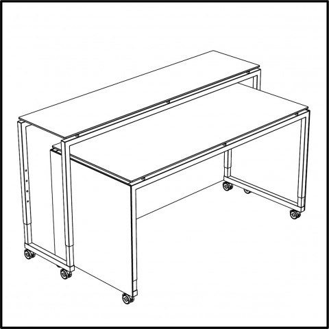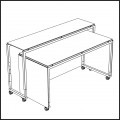 Venta® Mobile Bar, (set of two tables) on castors with integrated height adjustment, base made in steel with powder-coating, table-top is layed on connectors of the base frame, table-top made in material compact laminate, dimensions of the tables 77,2" x 31,5" x 43,1" (storage size) Table STAGE_80_M has covered three sides by blinds, 1 x FRONTBLIND_STAGE_M + 2 x SIDEBLIND_STAGE_80 / castors in diameter = 2,56"