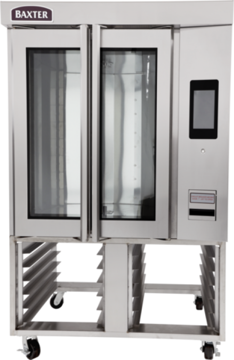 Mini Rotating Rack Oven, gas, Smart Touch programmable digital controls with touch screen, independent doors with dual pane windows, self-contained steam system, stainless steel construction, 95,000 BTU, cUL (shipped assembled)