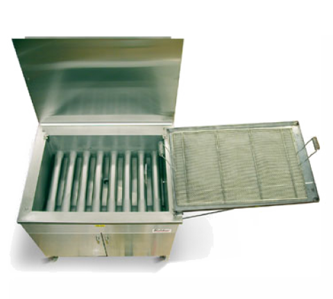 (21274-10) Donut Fryer, natural gas, floor model, 215 lb. shortening capacity, 24" x 34" fry area, standing pilot ignition, dial thermostat, no electricity required, exterior drain valve, (2) frying screens with bolt-on handles, stainless steel tank, cabinet & drain tray, adjustable, bolt-down legs, ETL, 89,000 BTU. Fryer. 734FG, Nat. Gas, standing pilot