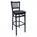 Troy Barstool, slat back, upholstered padded seat, footrest, metal frame with sand black finish, grade 4 uph.