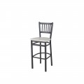 Troy Barstool, slat back, upholstered padded seat, footrest, steel frame with sand black finish, COM