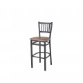 Troy Barstool, slat back, knotty pine relic seat, footrest, steel frame with sand black finish