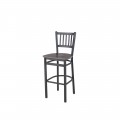 Troy Barstool, slat back, rustic copper relic seat, footrest, steel frame with sand black finish