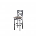 Akrin Barstool, cross back, farm house relic seat, footrest, steel frame with sand black finish