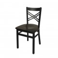 Akrin Side Chair, cross back, wood seat, metal frame with sand black finish